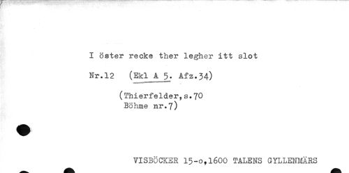 //// I öster recke ther legher itt slot //// Nr.12 (Ekl A 5. Afz.34) //// (Thierfelder,s.70 //// Böhme nr.7) //// VISBÖCKER 15-o,l600 TALENS GYLLENMARS ////