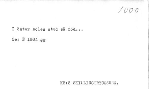 //// I öster solen stod så röd... //// Se: E 1884 gg //// KB:S SKILLINGTRYCKSREG. ////