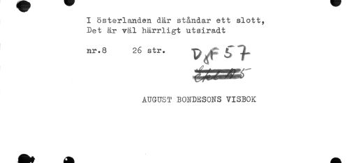 //// I osterlanden där ståndar ett slott. //// Det är väl härrligt utsiradt //// nr.8 26 str. p^^l^ //// AUGUST BONDESONS VISBOK ////