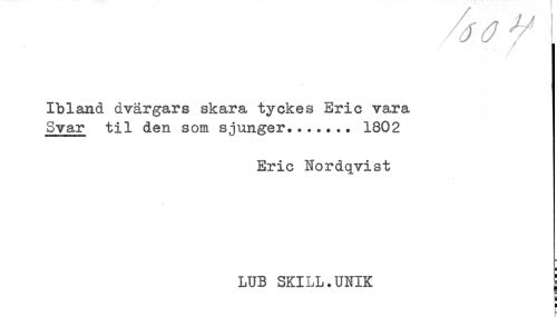 //// Ibland dvärgars skara tyckes Eric vara //// Svar til den som sjunger....... 1802 //// Eric Nordqvist //// LUB SKILL.UNIK j ////