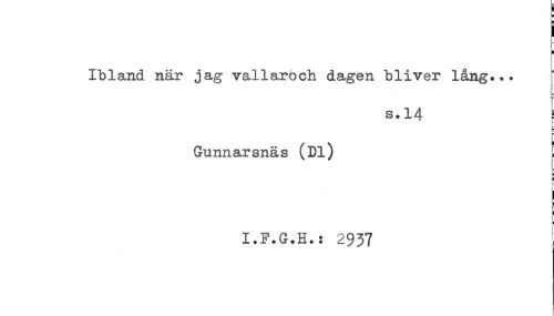//// Ibland när jag vallaroch dagen bliver lång... ' //// j //// s.14 //// r* //// Gunnarsnäs (Dl) //// I.F.G.H.: 2937 ////