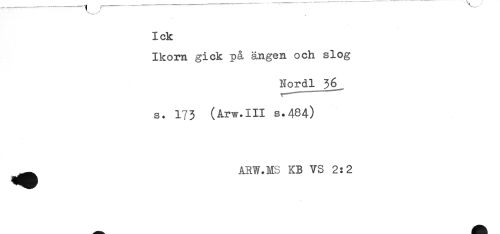 //// lek //// Ikorn gick på ängen och slog //// Nordl 3§ //// s. 173 (Arw.III s.484) //// ^^ ARW.MS KB VS 2:2 ////