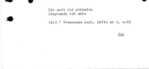 //// , Ida satt vid stranden //// ! //// , längtande och skon //// 1^:4 ? Svenssons saml. häfte nr 3, s.69 //// ÅBO //// ! //// i ////