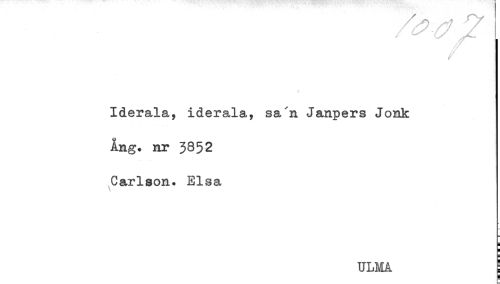 //// Iderala, iderala, sa "a Janpers Jonk //// Ang. nr 3852 //// Carlson. Elsa //// i //// H //// ULMÅ ! //// i! ////