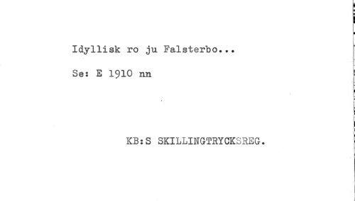//// Idyllisk ro ju Falsterbo... //// Se: E 1910 nn //// ! //// = //// c //// < //// I //// KB:S SKILLINGTRYCKSREG. //// ] ////