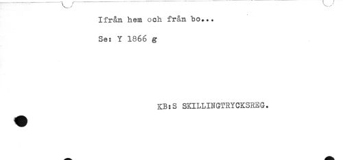 //// Ifrån hem och från bo... //// Se: Y 1866 g //// KB:S SKILLINGTRYCKSREG. ////