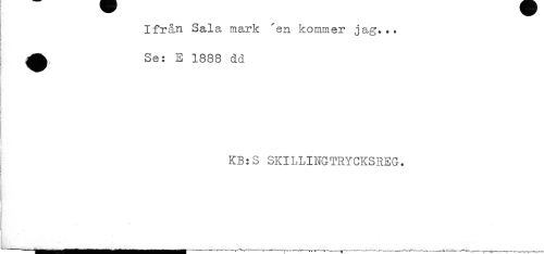 //// Ifrån Sala mark "en kommer jag... //// ^ Se: E 1888 dd //// ! //// j //// KB:S SKILLINGTRYCKSREG. //// ! ////