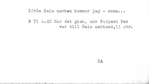 //// Ifrån Sala marken kommer jag - sann... //// B ?! s.42 Hur det gick, när Perpers Per //// var till Sala marknad,1$ str. //// RA ////