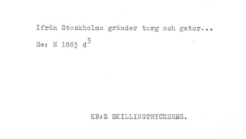 //// Ifrån Stockholms gränder torg och gator... //// Se: E 1883 d^ //// KB:S SKILLINGTRYCKSREG. ////