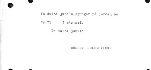 //// In dulci jubilo,sjunger på jorden bo //// Nr.75 4 str.mel. //// In dulci jubilo //// BRODIN JULENS VISO R ////
