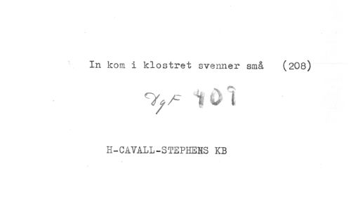 //// In kom i klostret svenner små (208) //// H-CAVALL-STEPHENS KB ////