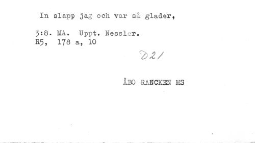 //// In slapp jag och var så gläder, //// 3:8. Må. Uppt. Nesslor. //// R5, 178 a, 10 //// ÅBO RANCKEN MS //// <* ////