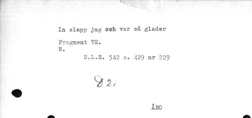 //// - //// * //// ..... ' //// In slapp jag var så gläder //// ^ - ' //// Fragment TE. //// N. //// S.L.S. 542 s. 429 nr 229 //// ÅBO ////