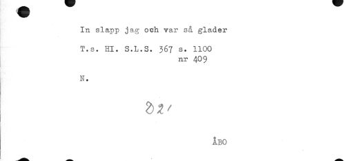 //// In slapp jag och var så gläder //// T.s. Hl. S.L.S. 367 s. 1100 //// nr 40 9 //// N. //// ÅBO ////