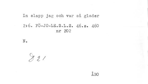 //// In slapp jag och var så gläder //// 2:6. FÖ-JO-LE.S.L.S. 46.s. 46O ' //// nr 202 //// 1 //// N. //// ÅBO ////