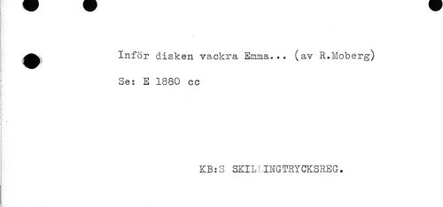 //// [ ' //// Inför disken vackra Emma... (av R.Moberg) //// ! Se: E 1880 cc //// } //// ! //// ! //// < //// t //// : //// : //// ; //// ; //// KB:S SKILLINGTRYCKSREG. ////