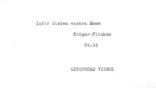 //// Infor disken vackra Emma //// Krögar-Flickan //// Nr. 24 //// LÖFSTRÖMS VISBOK ////