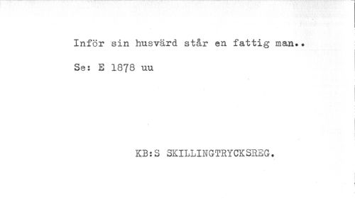 //// Inför sin husvärd står en fattig man.. //// ! //// Se: E 1878 uu //// KB:S SKILLINGTRYCKSREG. //// ! //// i //// ! //// ... 1 //// I ////