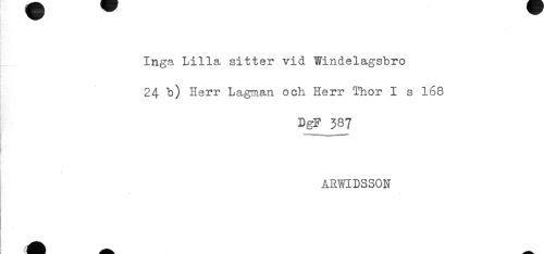 //// Inga Lilla sitter vid Windelagsbro //// 24 b) Herr Lagman och Herr Thor I s 168 //// DgF 387 //// ARWIDSSON //// t ////