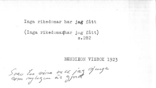 //// Inga rikedomar har jag fått //// t //// (inga rikedoma^har jag fått) //// s.282 //// BENDIXON VISBOK 1923 ////