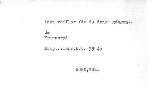 //// Inga våfflor får du denna gången.. //// ! //// Sm //// Frinnaryd //// Mskpt.Visor,E.U. 33545 //// NORD,MUS. ////
