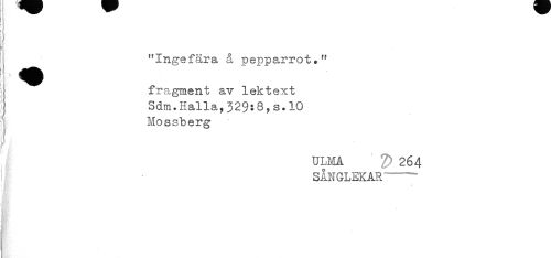 //// ; "Ingefära å pepparrot." //// ; fragment av lektext //// Sdm.Halla,329:8,s.10 //// 1 Mossberg //// ULHA 7) 264 //// SÅNGLEKAR ////