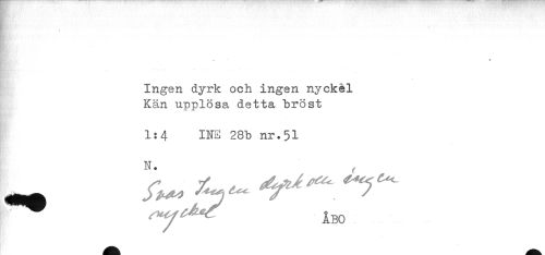 //// Ingen dyrk och ingen nyckel //// Kån upplösa detta bröst //// 1:4 INE 28b nr.51 ////
