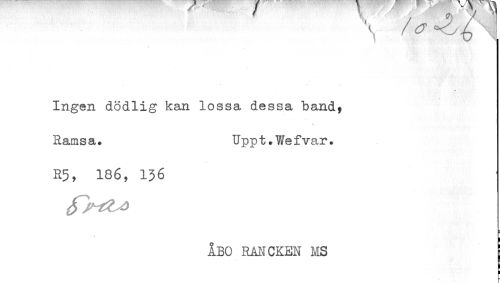 //// Ingen dödlig kan lossa dessa band. //// Ramsa. Uppt.Wefvar. //// R5, 186, 136 //// ÅBO RANCKEN MS ////