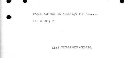 //// t //// Ingen har väl så eländigt liv san.... //// Se: E 188? f //// Ma?, - //// . //// ! < //// ! //// ! //// - //// i //// KB:S SKILLINGTRYCKSREG. //// A //// ) ////