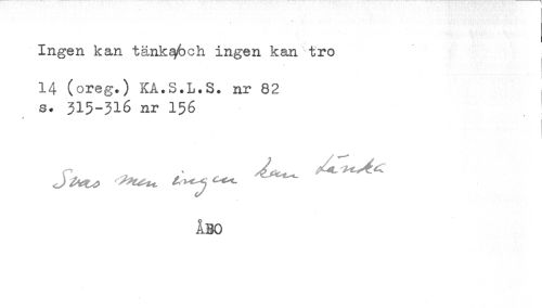 //// Ingen kan tånk^6ch ingen kan tro //// . //// 14 (oreg.) KA.S.L.S. nr 82 //// s* 315-316 nr 156 //// ÅBO ////