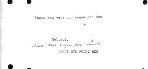 //// Ingen kan veta och ingen kan tro //// i 172 //// * //// Mel.not. ^ //// LAGUS NYL FOLKV REG ////