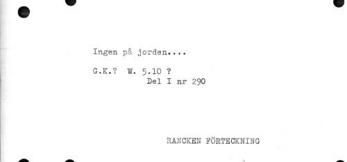 //// Ingen på jorden.... //// G.K.? W. 5.10 ? //// Del I nr 290 //// RANCKEN FÖRTECKNING ////