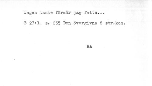 //// Ingen tanke förmår jag fatta... //// B s. 235 Den övergivne 8 str.kom. //// RA ////