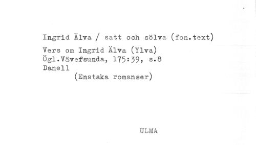 //// Ingrid Älva / satt och sölva (fon.text) //// Vers om Ingrid Älva (Ylva) //// Ogl+Våvefsunda, 175:39? s.8 //// Daneli //// (Enstaka romanser) //// ULMA ////