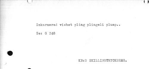 //// * //// - //// Inkarnerad vishet pling plingeli plump.. //// Se: G 248 //// KB:S SKILLINGTRYCKSREG. ////