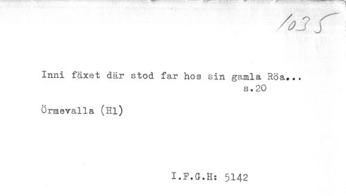 //// Inni fäxet där stod far hos sin gamla Roa... //// s.20 //// Örmevalla (Hl) //// I.F.G.H: 5142 ////