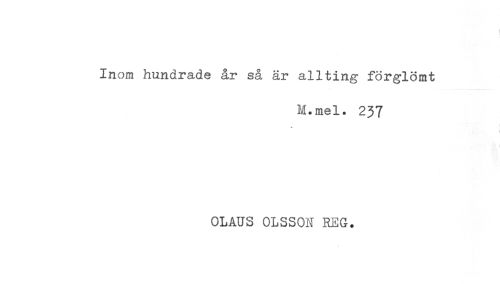 //// Inom hundrade år så är allting förglömt //// M.mel. 237 //// t //// OLAUS OLSSON REG. ////