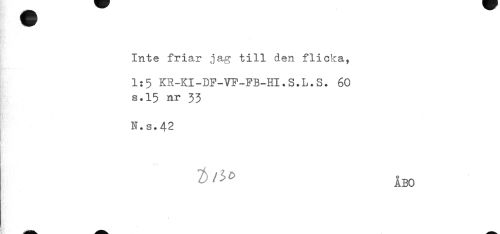 //// Inte friar jag till den flicka, //// 1:5 KR-KI-DF-VF-FB-HI.S.L.S. 60 //// s.15 nr 33 //// N.s.42 //// ÅBO //// < ////