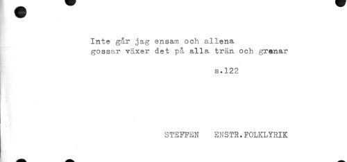 //// Inte går jag ensam och allena //// gossar växer det på alla trän och granar //// s.122 //// STEFFEN ENSTR.FOLKLYRIK ////