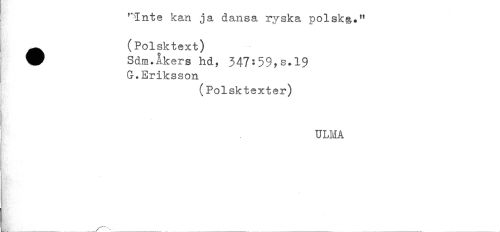 //// ''Inte kan ja dansa ryska polsk^." //// ^ (Polsktext) //// ^ Sdm.Åkers hd, 347^59,3.19 //// G.Eriksson //// (Polsktexter) //// ULMA ////