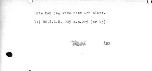 //// __ //// Inte kan jag väva rätt och slätt. //// 1:7 BO.S.L.S. 205 a.s.229 (nr 13) //// ÅBO ////