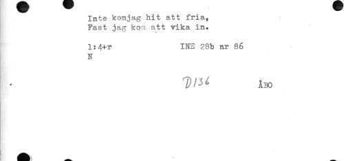 //// Inte komjag hit att fria, //// Fast jag kom att vika in. //// * //// l:4+r INE 28b nr 86 //// N //// ÅBO //// , ////