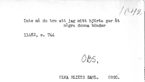 //// Inte ma. du tro att jag mitt hjärta ger åt //// några dumma bönder //// 11482, s. 744 //// ULMA BLIXTS SAML. OBSC. ; ////