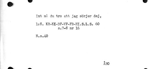 //// t ^ //// Int må du tro att jag sörjer dej, //// 1:8. KR-KI-DF-VF-FB-HI.S.L.S. 60 //// s.7-8 nr 16 //// N.s.AO //// ÅBO ////