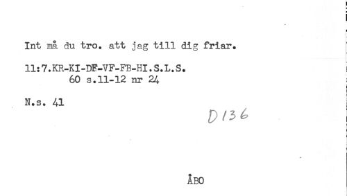 //// a //// i //// ! //// < //// Int iaå du tro. att jag till dig friar. //// 11:7.KR-KI-DF-VF-FB-HI.S.L.S. //// 60 s.11-12 nr % //// N.s. 41 //// P/3^ //// j //// i //// ÅBO ////