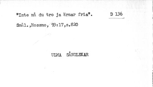 //// "Inte må du tro ja ämar fria". D 136 //// ---* t //// Smål.,Hossmo, 93:17,s.820 ! //// ULMA SÅNGLEKAR //// i //// i //// i //// i //// i //// t //// c ////