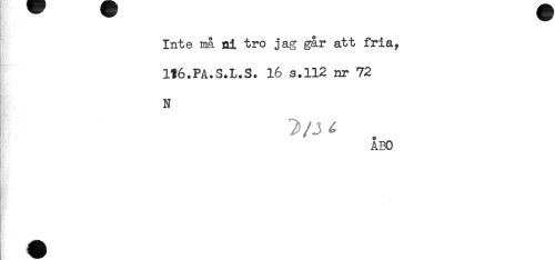 //// Inte ma ni tro jag gar att fria, //// H6.PA.S.L.S. 16 s.112 nr 72 //// N //// ÅBO ////