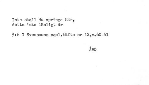 //// Inte skall du springa här, //// detta icke lönligt är //// 5:6 ? Svenssons sajnl.häfte nr 12,s.60-61 //// ÅBO ////