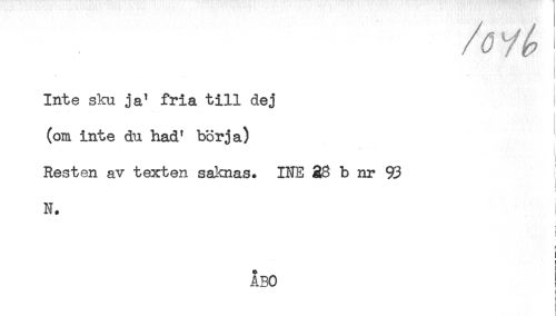 //// .. ! //// t //// Inte sku ja' fria till dej //// (om inte du had* börja) //// Resten av texten saknas. INE 28 b nr 93 //// N. //// * //// ! //// ÅBO //// [ ////