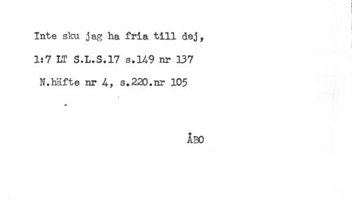 //// Inte sku jag ha fria till dej, //// 1:7 LT S.L.S.17 s.149 nr 137 //// N.häfte nr s.220.nr 105 //// T //// ÅBO ////